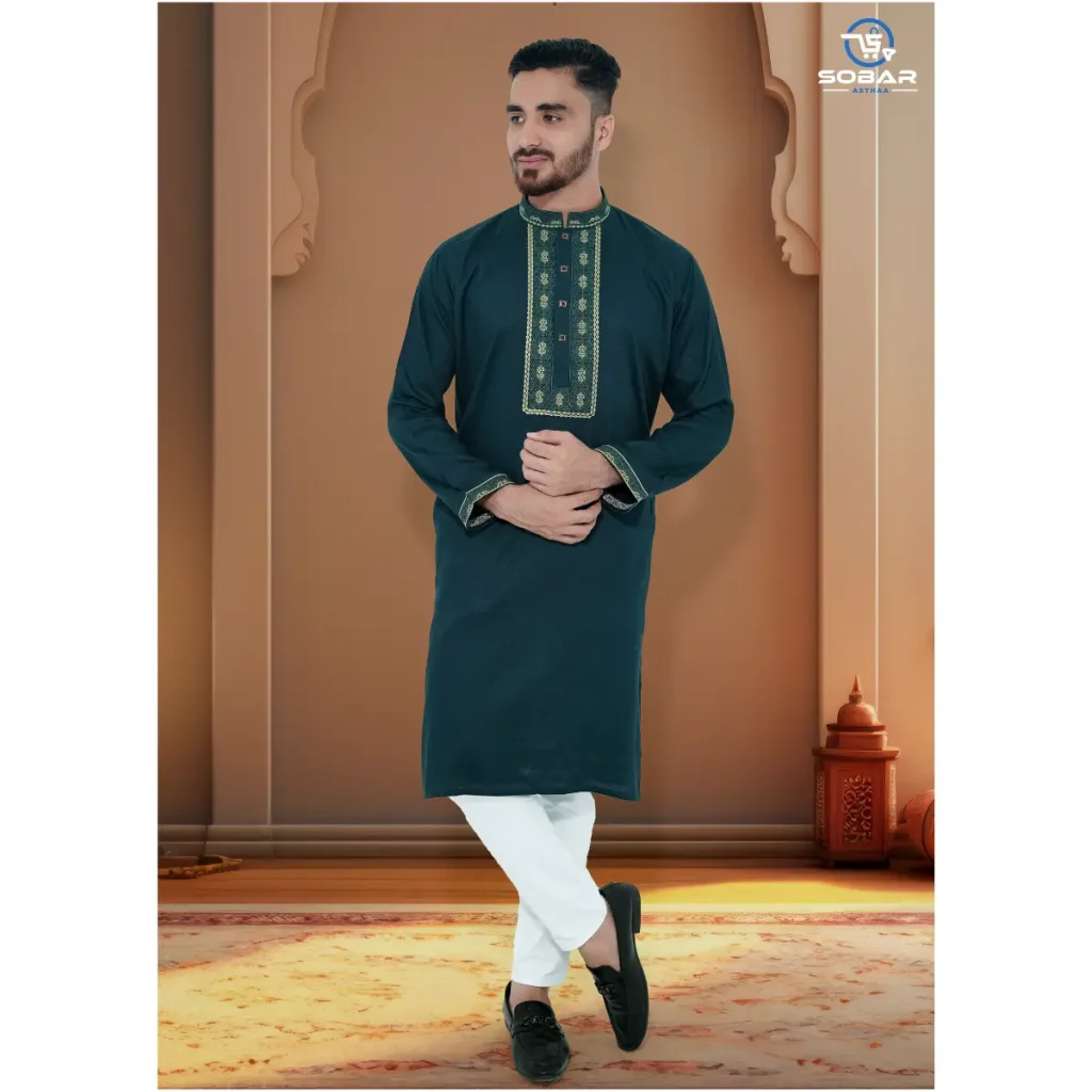 The collection highlights rich navy blue shades that exude sophistication and charm, paired with meticulous stitching and detailing to enhance your overall look. Whether for family gatherings, cultural events, or special occasions, these Panjabis ensure you stand out with style and grace.